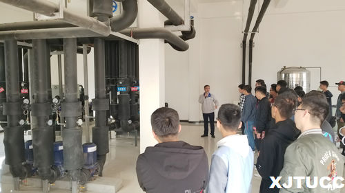 水务公司综合部负责人李康部长简单介绍了活动流程和安全事宜后,便导向同学们一起到机组水源热泵房进行重点参观学习,机组中内外循环进出水,同学们认真的听讲,了解系统给排水,过滤除污、除油净水工序。随后大家进入公司展厅进行净水的核心工艺“膜技术”的了解和学习,在中控室,同学们感受了大规模全自动化的工作流程,厂区的生化池和温室大棚展现的则是环保和能源循环利用的知识,在膜池大家看到了翻滚的污水经过浓缩脱水和消毒变成清澈的净水。最后李康部长和我院师生一起在厂区东门进行了学习总结。