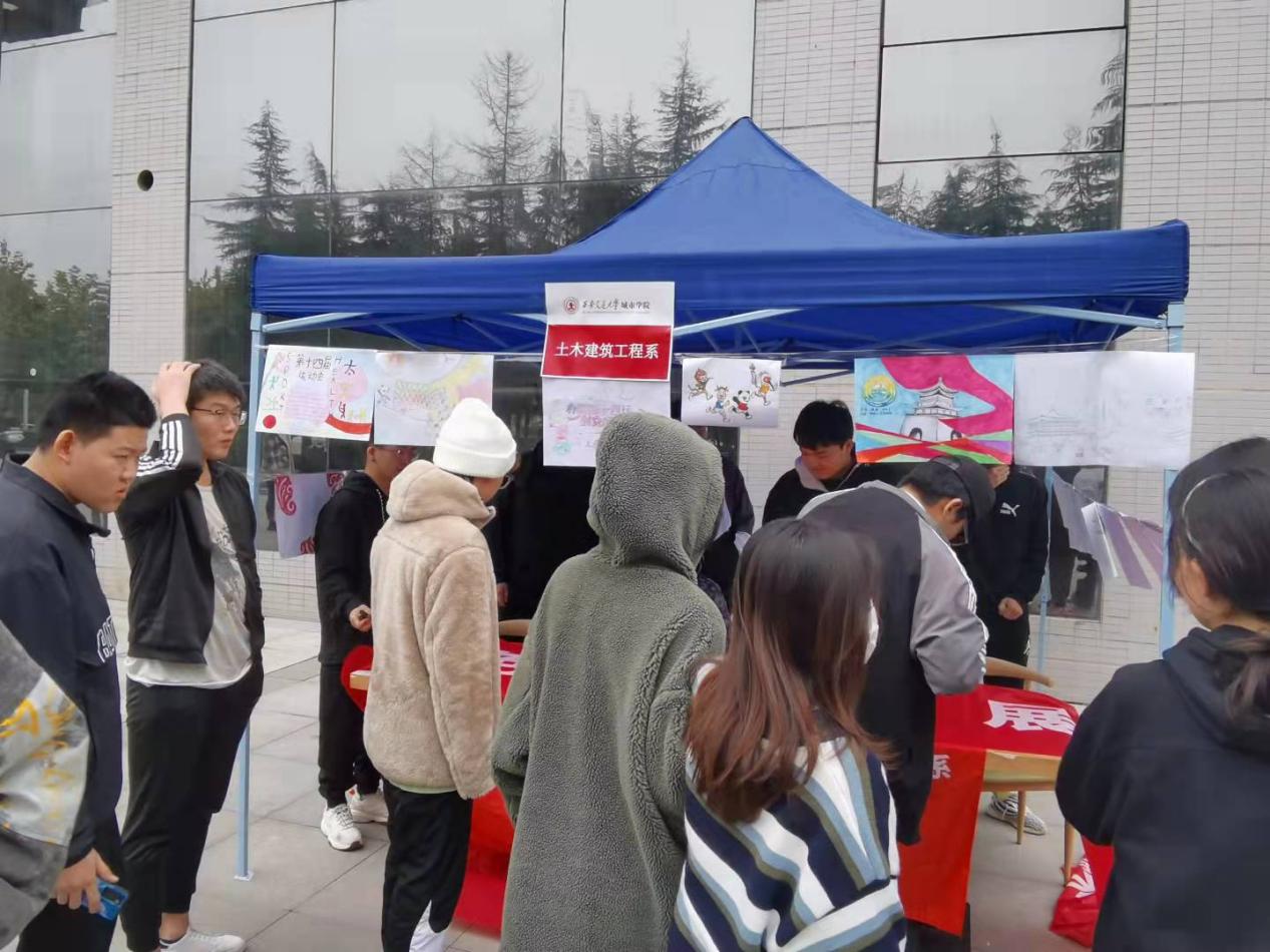 10月19日,为积极响应学院团委展开“赓续红色血脉,担当青年使命”主题团日活动,体现当代青年风范,同时响应我陕十四运的体育盛会,beat365亚洲版官方网站土木建筑工程系在学院中快餐厅楼下举办了“升温十四运,梦绘我的城”主题团日展览活动。