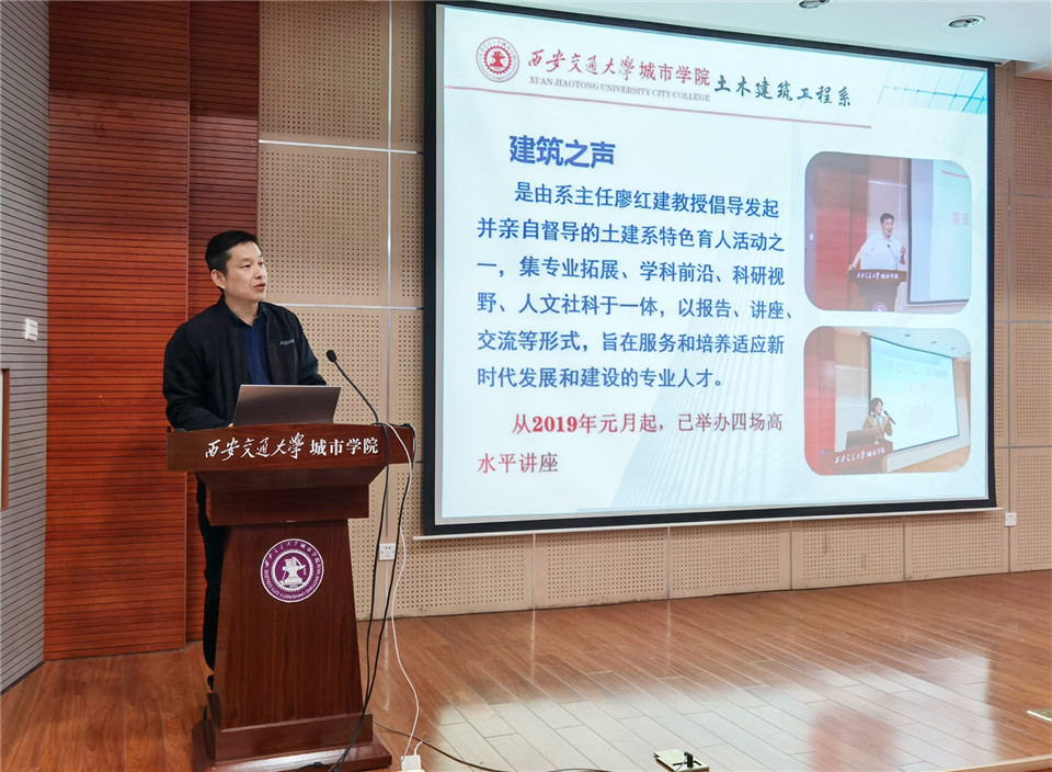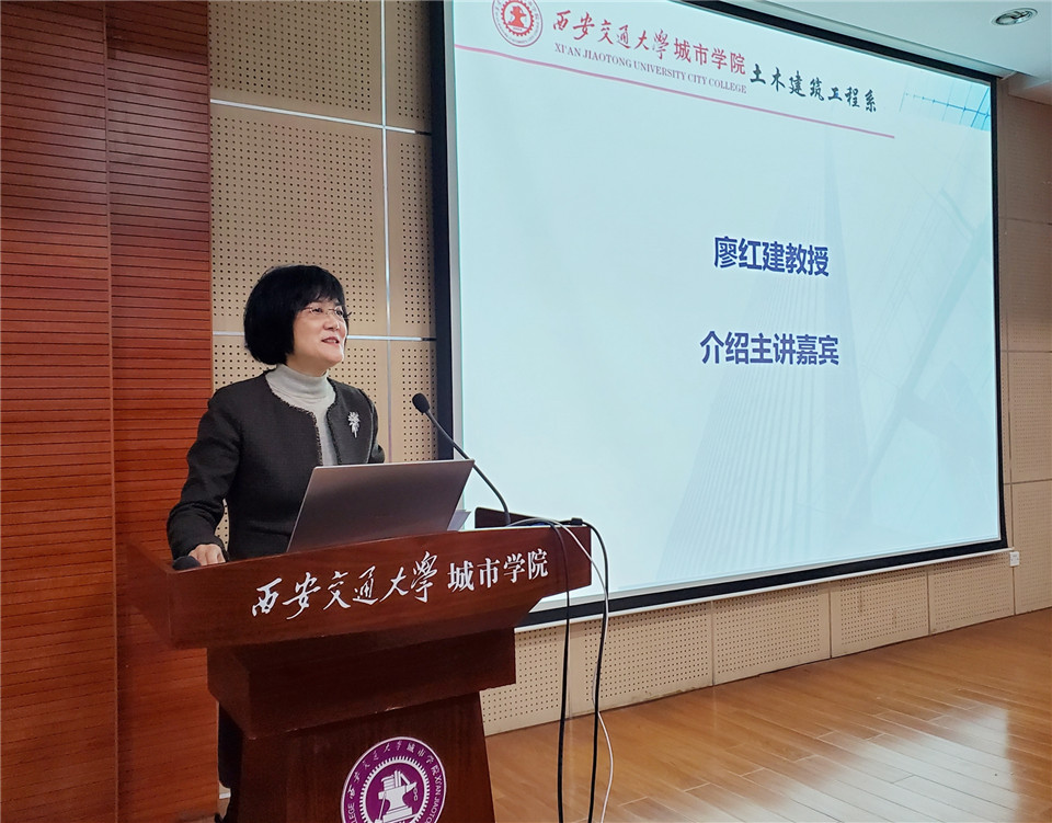 讲座开始前,廖红建教授进行了发言,她隆重地介绍了谢永利教授的履历,并讲到,“建筑之声”是土建系把握新时代立德树人新要求,发扬“西迁精神”,落实学院高素质应用型人才培养大计,通过教改实践探索,打造的综合教育平台。旨在帮助学生开拓视野,树立专业自信,培育创新思维,引导学生做到“知、信、行”相统一。不断优化专业教育与素质教育,培养具有大国工匠精神的新时代建筑人才和为国家伟大工程贡献力量的工程师,是城院土建人的初心和目标,希望师生共同努力,去创造和实现梦想。