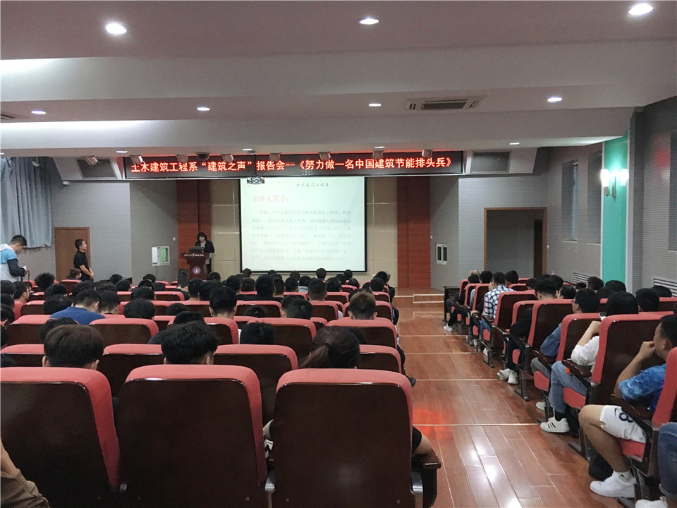 在系列教育活动的开始环节,土建系全体教职工与新生进行集体见面交流,系主任廖红建教授代表土建系对同学们表达了最热烈的欢迎并寄语他们不忘初心,珍惜时光,学好本领,回报国家。老师们通过简短的演讲,阐述了建筑行业新形势、新方向,未来建筑行业的美好前景,自信能够和同学们一起不负重托,共同发展。在专业认知教育中,主任助理康彦青、黎莹结合专业特点,详细的为同学们介绍了建筑环境与能源应用工程和土木工程两个专业的培养方案、培养目标与具体教学方案,以及专业考研、就业方向与各项竞赛情况,引导学生熟悉大学专业教育的模式,切合自身能力,制定科学的学业与职业规划。在行为养成、党团知识教育环节,系学生主管牛彦龙为同学进行了《勿忘初心,心怀梦想,励志成才》主题讲座,从自我认知,价值目标,思想政治,课外实践等八方面要求同学们对照做到“当代大学生要做好的八件事”,并带领学生认真学习了《学生手册》中学籍、管理、奖惩等内容。他还通过专题辅导,结合实例对大学生课外十学分具体实施方案、公寓创优工作等进行详细的讲解和说明。系团工委书记张莹在党团教育环节中,对学生进行了入党启蒙教育,重点就加入党组织所具备的必要条件做了要求和动员。并结合我系团学工作理论和相关活动,引导新生积极参与各类课外实践活动,提升个人的综合素质。在参观实践环节,系实验室主任龙玉成及相关老师组织新生对各类实验室进行参观,并对我系的实习实训基地进行详细的介绍,帮助新生更为深入的认识所修专业,加深对专业学科与技术应用的理解;在实践教育中,我系还将新生教育与品牌活动“建筑之声”有效结合,邀请全国建筑业“大国工匠”周敏高级工程师为新生进行《努力做一名中国建筑节能排头兵》的专题报告,重点关注专业的发展机遇及毕业后的从业方向,拓宽思维和视野,激发学生的学习热情。