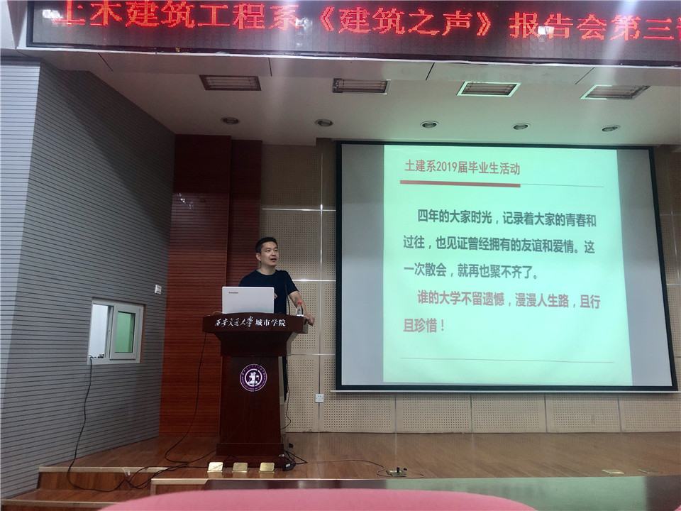 6月5日下午,土建系在F100组织召开了2015级毕业生毕业班会,系学生主管牛彦龙老师和全体毕业生参加,会议旨在总结2015级学生大学生活,对即将开始的文明离校进行动员。