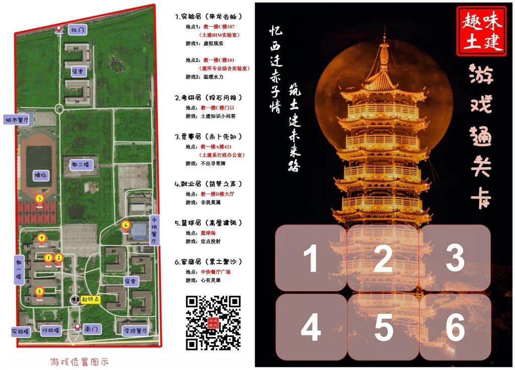 接着,师生一起前往校园喷泉广场,参加“忆西迁赤子情、筑土建未来路”趣味土建欢娱活动。此项活动旨在帮助新生了解土建系的教学、实验、竞赛、考研、就业、娱乐等成果、发展及现状。为了顺利举办本次活动,老师们在暑期积极进行了策划和组织。活动设置六个点位和主题,6人成1队,最短时间通关者为胜。分别为:实验局——来龙去脉,通过设置问答和实操,让学生了解土建系的BIM实训室和专业实验室;考研局——投石问路。通过设置知识小问答,让学生了解本专业以后的考研学校、竞赛获奖等(题卡内容基本出自展板栏);竟赛局——未卜先知,通过现场指挥游戏,一方面锻炼学生反应和协作能力,同时了解土建系行政办公地点;就业局——筑梦之声,通过专业相关问答与猜歌名相结合的游戏,让学生了解本专业就业方向;篮球局——高屋建瓴,通过投篮活动,体会运动乐趣,传承体育精神;家庭局——累土聚沙,通过踢毽子接力游戏,形成团结协作、积极向上的集体氛围。师生们在活动过程中精神饱满,热情积极,比赛最终决出一等奖2队、二等奖4队,三等奖4队,参与奖若干,老师们为获奖和参与的队伍颁发了证书与奖品,同时为大家赠送了中秋月饼。