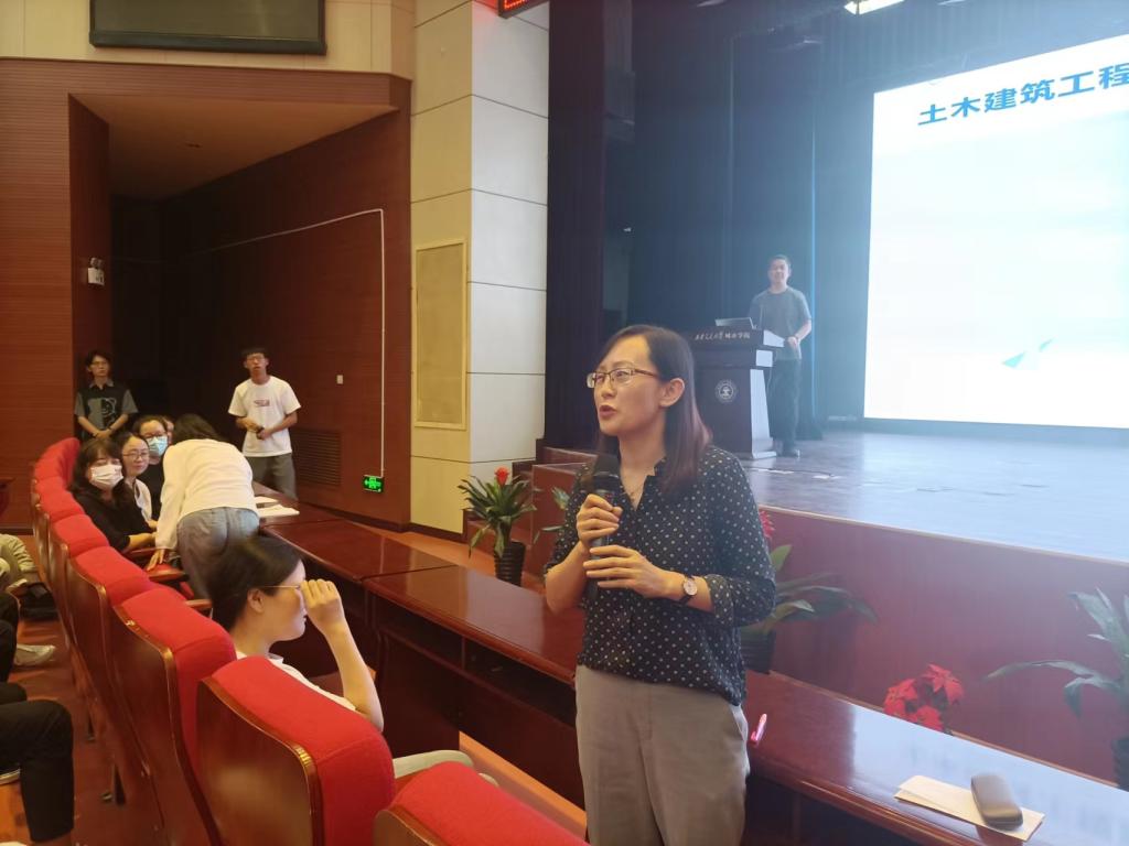 接着,系主任助理康彦青副教授、黎莹副教授分别就建环与土木工程两个本科专业的培养计划和学习任务进行了系统地讲解,帮助同学们进行合理的学业规划和指导。同时,两位老师还向同学们详细介绍了土建系部门职责与各位教职员工。接下来,高年级同学代表关宁与曹诗翘进行了发言,他们在与同学们分享自己学习经验的同时,也就积极锻炼课外能力,丰富大学生活等提出了自己的建议。