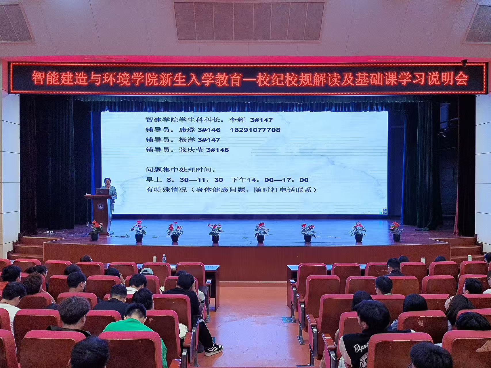 为了让2025级新生更快适应校园生活,智建学院于9月19日在教二报告厅组织开展了新生入学教育——校纪校规解读及数学学科竞赛说明会。本次入学教育由数学教学部主任张世梅教授及智建学院团工委书记康璐主讲。