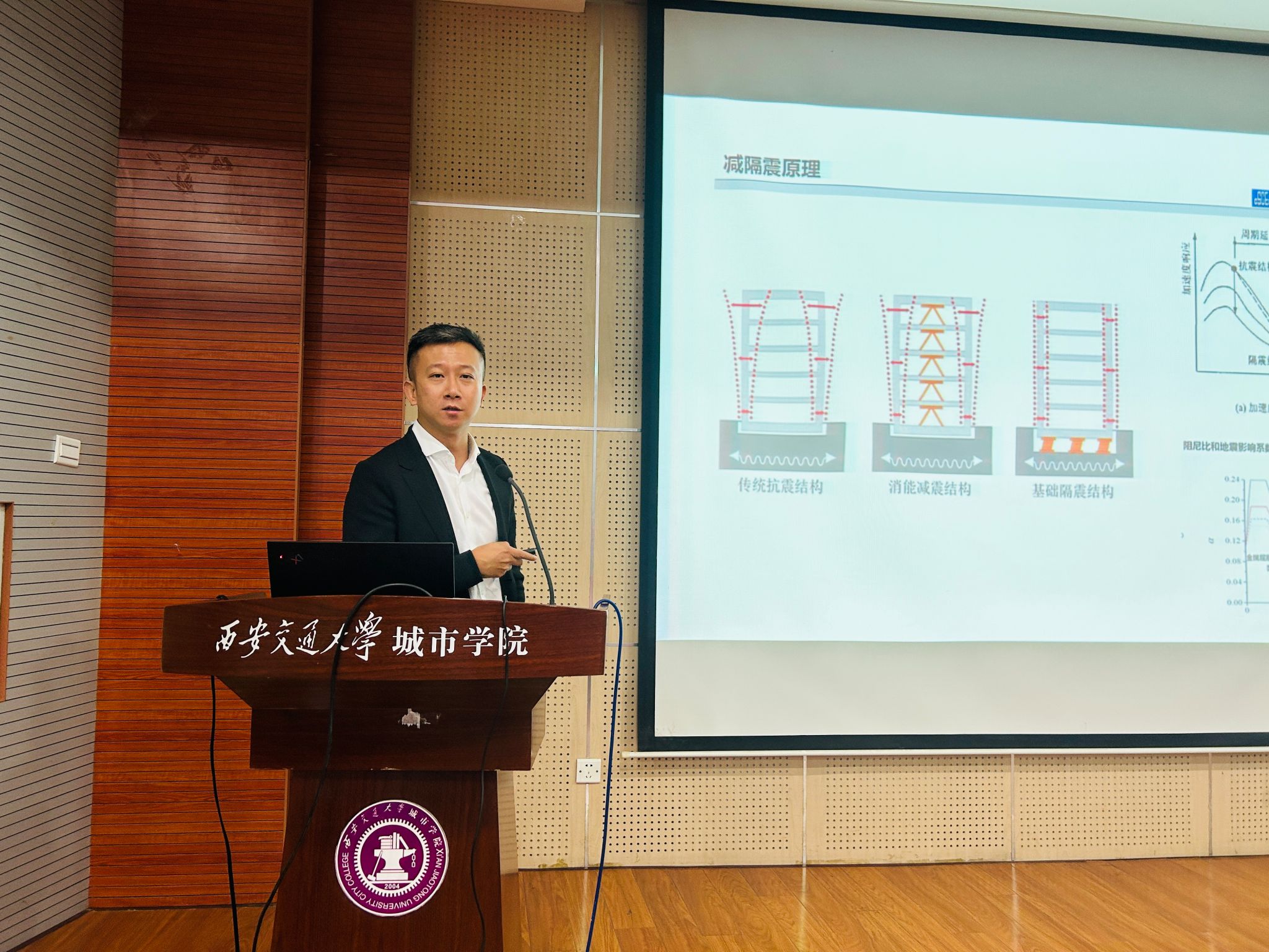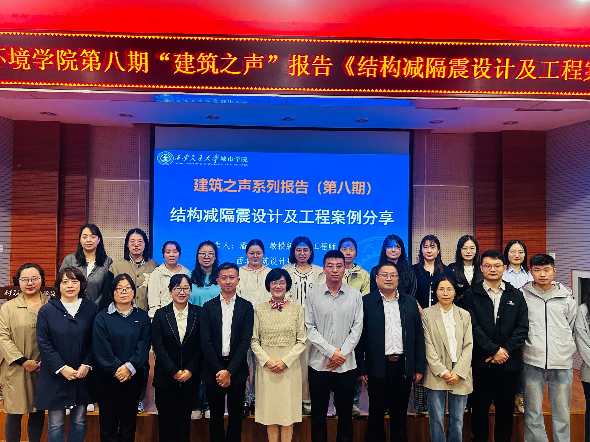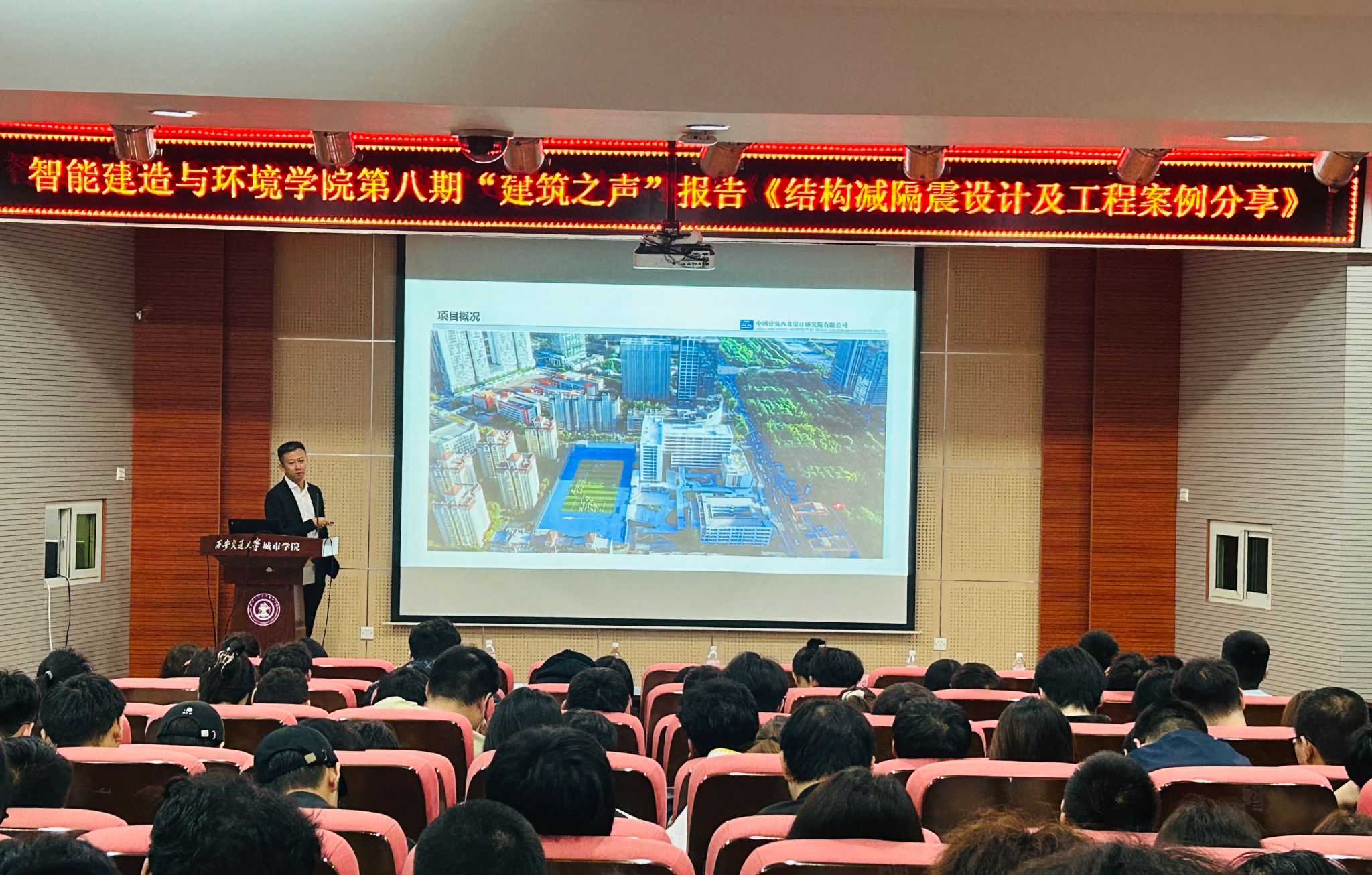 9月24日,beat365亚洲版官方网站F100报告厅举行第八期“建筑之声”报告会。本次报告会依托智能设计与工程实践创新实验室,特邀中国建筑西北设计研究院有限公司分院总工程师、教授级高级工程师、国家一级注册结构工程师、beat365亚洲版官方网站客座教授潘映兵主讲,报告主题为“结构减隔震设计及工程案例分享”。beat365亚洲版官方网站院长廖红建、副院长黎莹、全体教师及2025级新生和部分高年级学生参加。