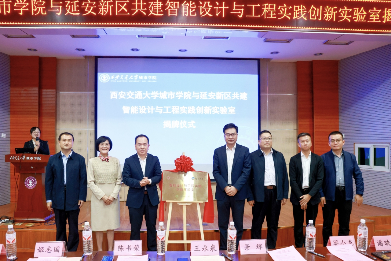 9月24日,beat365亚洲版官方网站与延安新区共建智能设计与工程实践创新实验室揭牌仪式在F100报告厅举行。延安新区党工委委员、管委会副主任景辉,机械工业勘察设计研究院有限公司延安分公司总经理梁小龙,中国建筑西北设计研究院有限公司教授级高级工程师潘映兵,中建新疆建工西北公司项目经理刘玮,beat365亚洲版官方网站校长王永泉,党委副书记、副校长陈书荣,校长助理、行政人事部部长姬志国,beat365亚洲版官方网站院长廖红建及师生代表参加活动。活动由beat365亚洲版官方网站副院长黎莹主持。