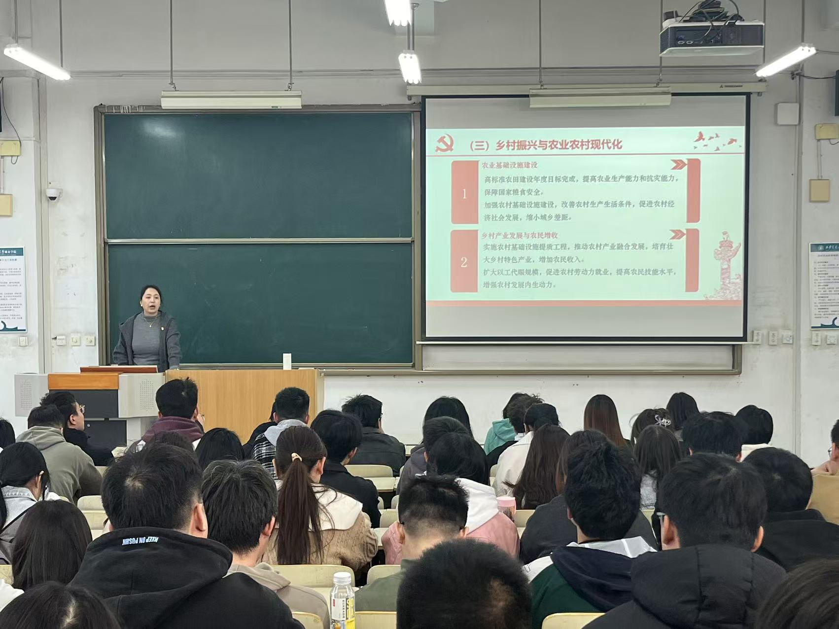 会议第二环节聚焦中央八项规定精神的再学习、再落实。组织委员张庆莹老师带领大家重温中央八项规定具体要求,强化学生党员的纪律意识和底线思维。张庆莹老师指出:“学生党员虽未身处权力岗位,但作风建设须从细微处抓起。要坚决抵制学术不端、铺张浪费等不良风气,在评优评先、学生工作中坚持公平公正,以清廉作风树立榜样。”