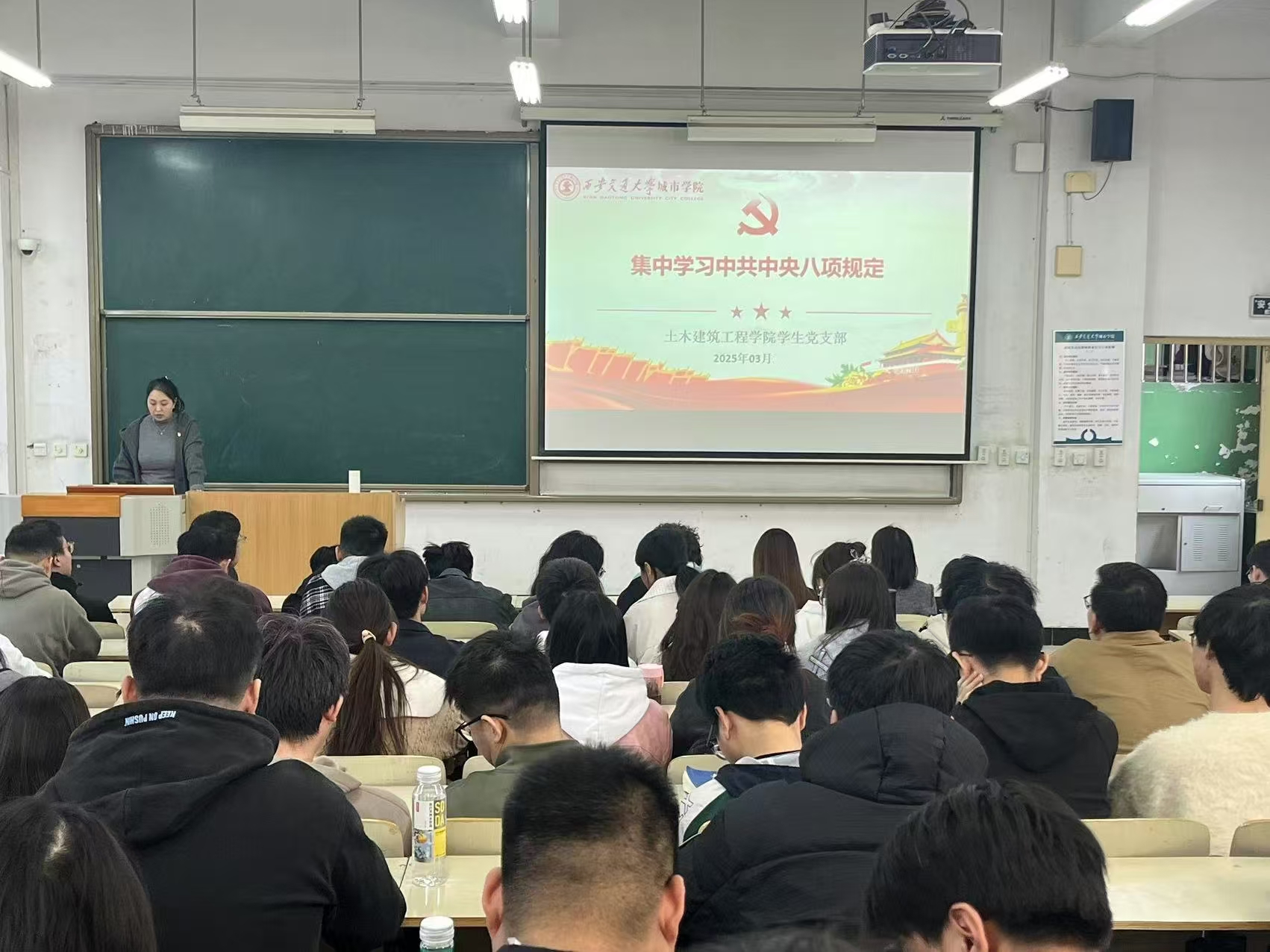 为深入学习贯彻2025年全国两会精神,扎实推进党风廉政建设,增强学生党员的政治素养和责任担当,320日中午1210分,土木建筑工程学院学生党支部在D100组织召开专题民主生活会,围绕“学习贯彻两会精神,践行中央八项规定”主题展开集中学习。会议由组织委员张庆莹老师主持,支部全体党员、预备党员及部分入党积极分子参加会议。