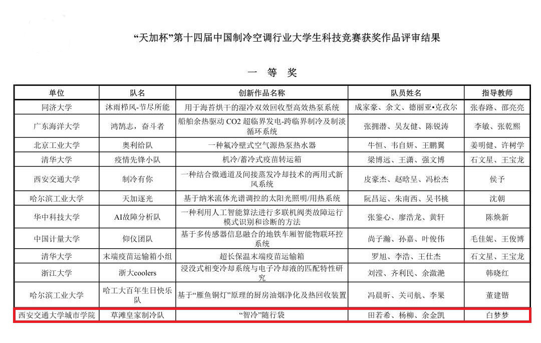 2020年8月2日,为了响应国家疫情防控要求,“天加杯”第十四届中国制冷空调行业大学生科技竞赛决赛在线上举行。beat365亚洲版官方网站土木建筑工程系建筑环境与能源应用工程专业2017级学生田若希、杨柳、余金凯三位同学在白梦梦老师的指导下,经过激烈角逐,荣获全国一等奖。
