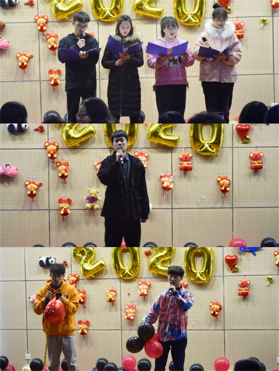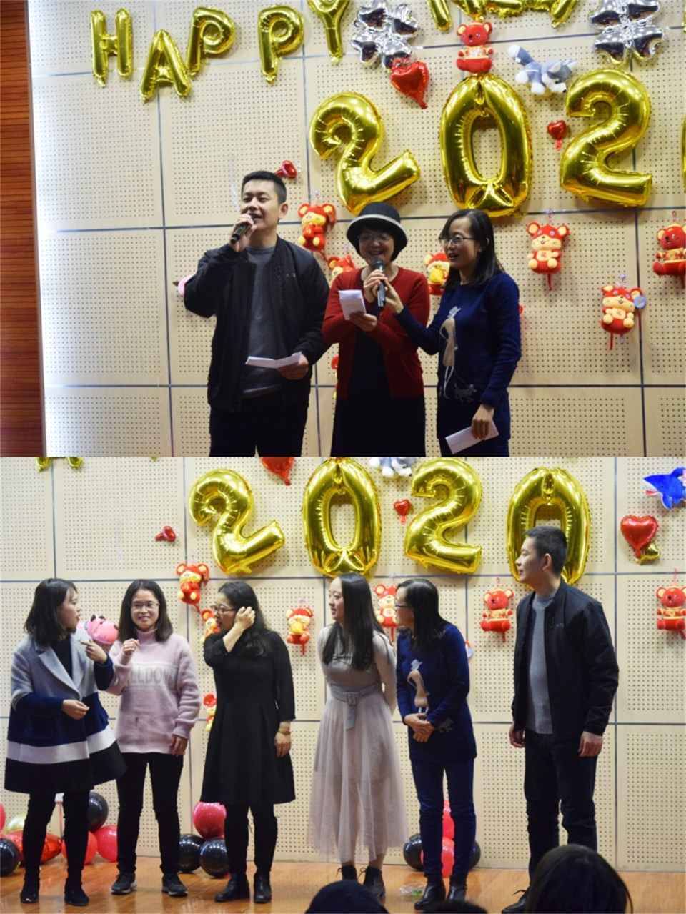期间,晚会穿插的互动节目也极尽幽默搞笑之能,其中萝卜蹲等游戏不仅让获胜者赢得奖品,参与者充分参入到游戏之中,老师同学们为了迷惑对手选取的名字也赚足了现场观众的欢声笑语。同时,本次晚会由廖红建主任代表现场全体老师讲话,饱含殷殷期望,并祝愿全体师生身体健康,心想事成,新年更上一层楼。最后,一首《相亲相爱》为本次晚会拉下了帷幕。