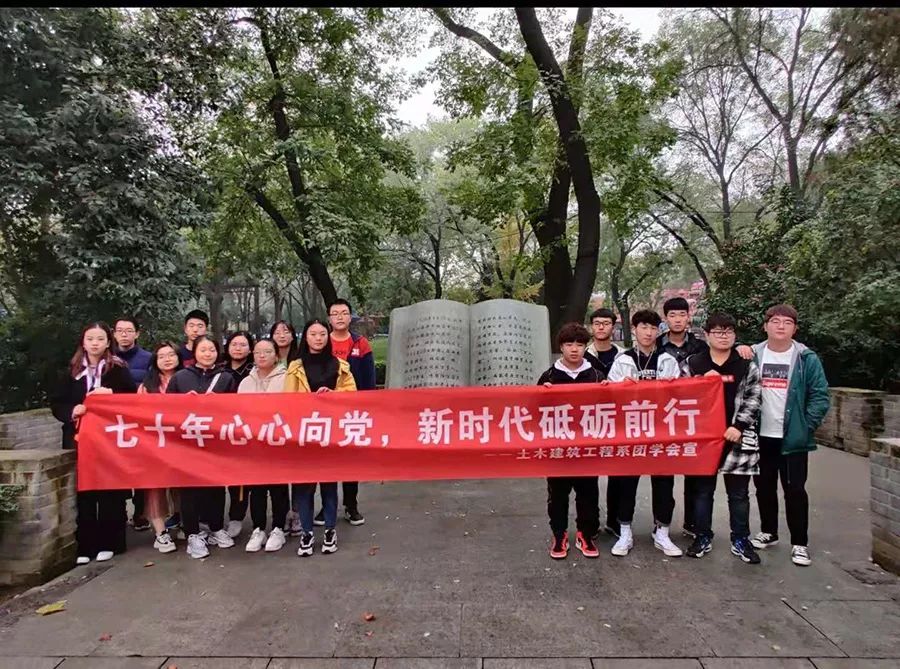 为激励和引领广大青少年弘扬以爱国主义为核心的民族精神,响应习近平总书记在十九大会议上对广大青少年的号召,矢志投身于新时代中国特色社会主义的建设当中。11月9日星期六下午两点,土建系团学会举行了团日活动:参观革命公园。