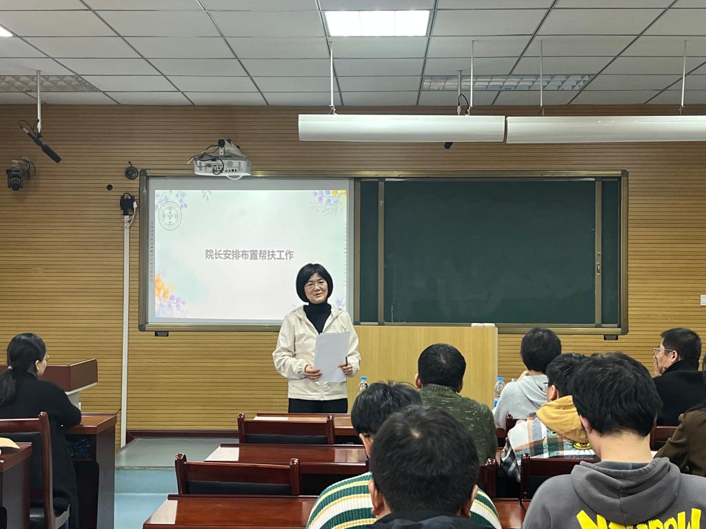 院长廖红建现场宣布指导老师分配情况,并就下一步的考研精准帮扶工作进行安排布置。她对同学们的勇攀知识高峰表示肯定,鼓励同学们积极联系帮扶老师进行考研指导,严格自律,脚踏实地,掌握高效的学习方法,提高学习深造的高效能;同时要求各位帮扶老师要进一步加强与考研学生的沟通与交流,加强学业帮扶、过程帮扶、心理帮扶,深入了解他们的备考情况和需求,为他们提供更加精准、个性化的指导和服务。