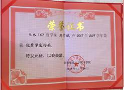 2019年6月,荣获陕西省第三届大学生结构设计竞赛三等奖;