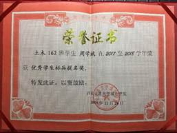 2017-2018学年,荣获beat365亚洲版官方网站优秀学习标兵提名奖;